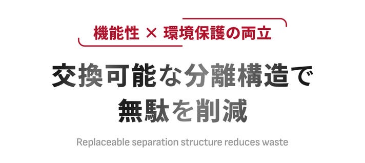 これにより、資源の無駄遣いを減らし、環境への負荷も大幅にカット。さらに、必要な部分だけ買い替えることでコストも抑えられ、長く愛用できるエコな選択肢となっています。
