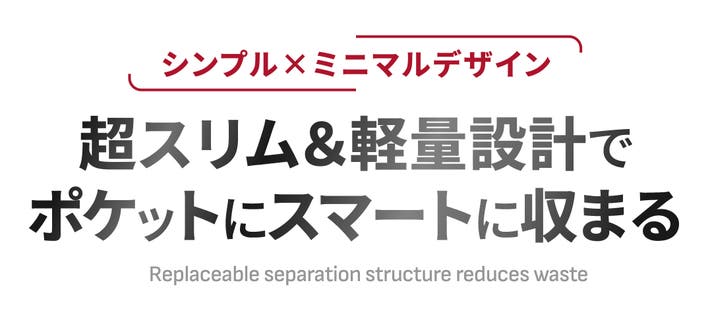 重さを感じさせない設計だから、長時間の持ち歩きや頻繁な出し入れも快適です。日常の「持つ」体験を、もっと自由で心地よいものへと進化させました。