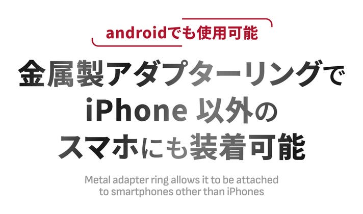 A. iPhoneはもちろん、付属の金属製アダプターリングを使えば、どのスマートフォンにも装着可能です。