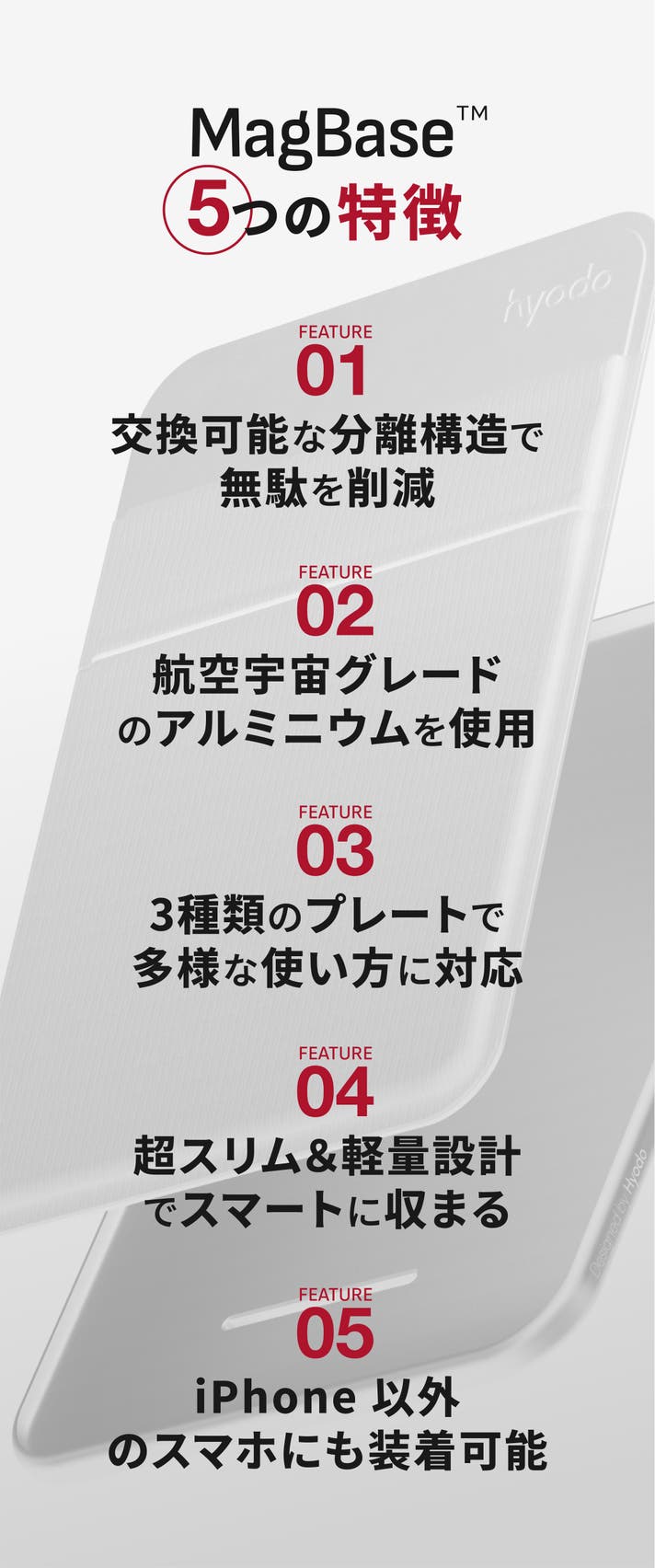 薄く、美しく、賢く持つ。3つのプレートで、あなたの毎日にフィットする新しい相棒。必要なものだけを選び、不要なものは持たない。MagBase™が提案する、次世代のスマートな持ち物習慣。