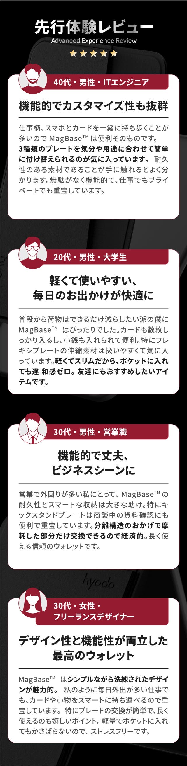 現代のライフスタイルは、多様化し、スマートで効率的な持ち物が求められています。MagBase™はそんな時代のニーズに応え、ただの財布ではなく、あなたの生活に寄り添うパートナーです。