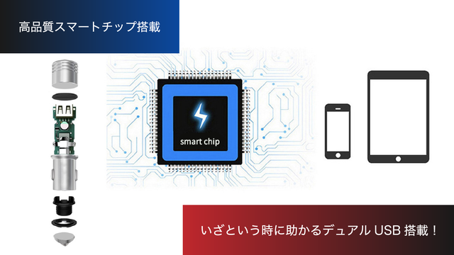 USBポートが二つ付いてるので、スマホやiPadの給電に便利です。