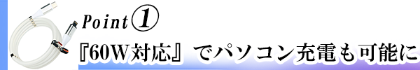 - 待望のType-C採用!60W対応でパソコン・スマホも1本で充電可能に!