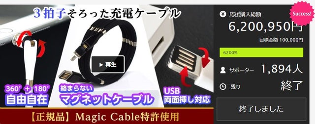 昨年 2月公開『Magic Cable540X』では『1,894人』もの支援をいただきました。