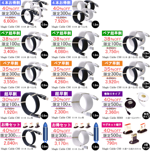 ※「Magic Cable 540X」のマグネット端子とは互換性がありません。