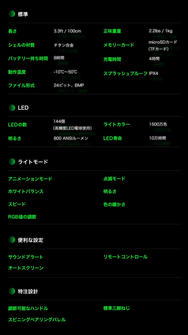 - 144個の高解像度RGB LEDが内蔵され、電球、懐中電灯、ライトコード等の光源が不要。