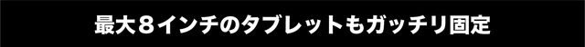 ①最大8インチ(約300g)のタブレットもガッチリ固定!