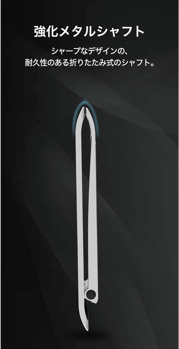 折りたたんだ形はシャープで美しくデザインされています。シャフトも亜鉛合金で耐久性が高いので、劣化を気にすることなく安心して使えます。