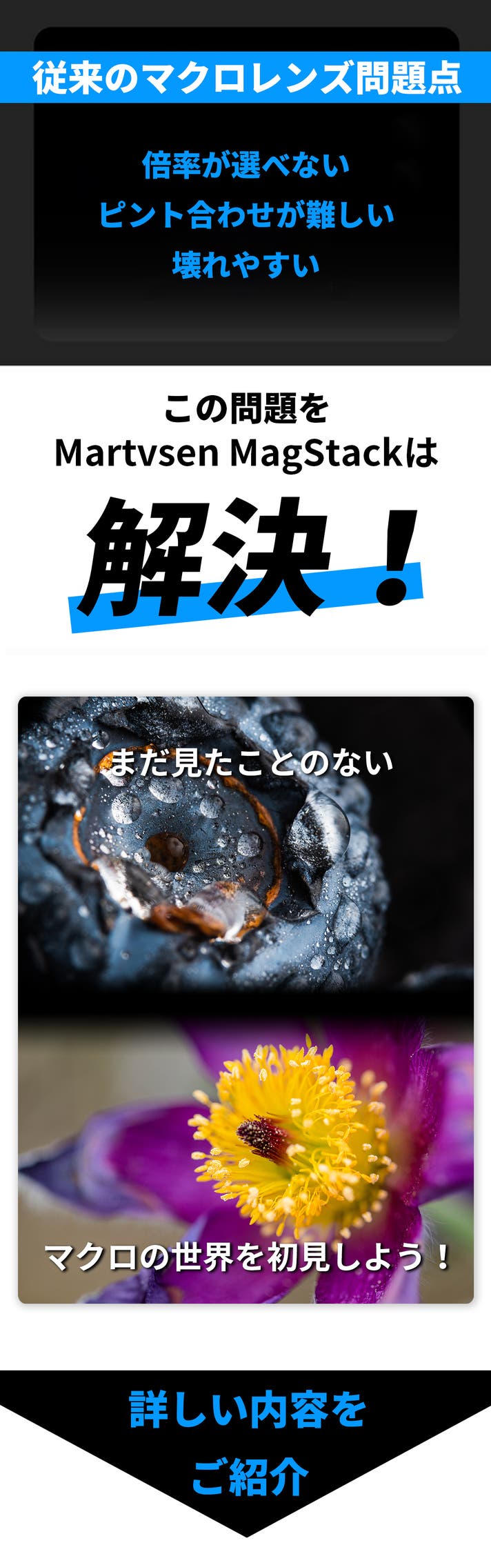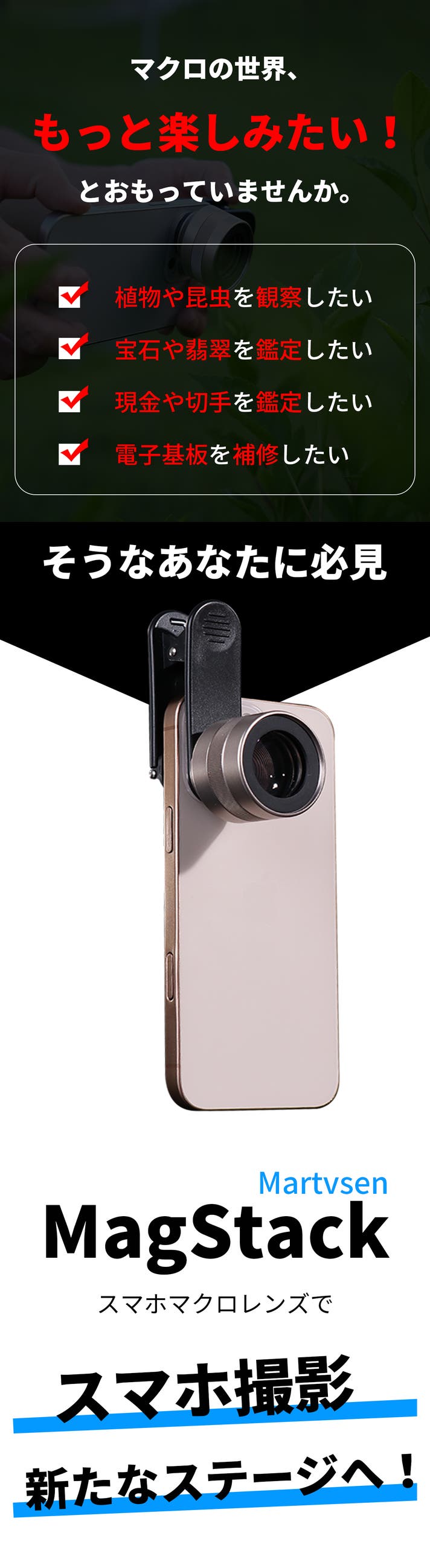 今回、人々に寄り添い、日常生活をより便利にできるマクロレンズ「Martvsen MagStack」 をお届けいたします。