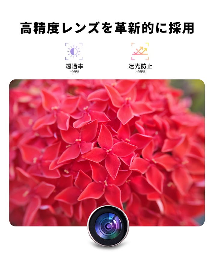 8層コーティングと組み合わせることで、光の屈折と色収差を大幅に低減し、鮮やかな色彩でクリアでシャープな画像を実現します。あらゆる写真はプロ仕様の機材に匹敵する品質で、微細なディテールまで驚くほど鮮明に映し出します。