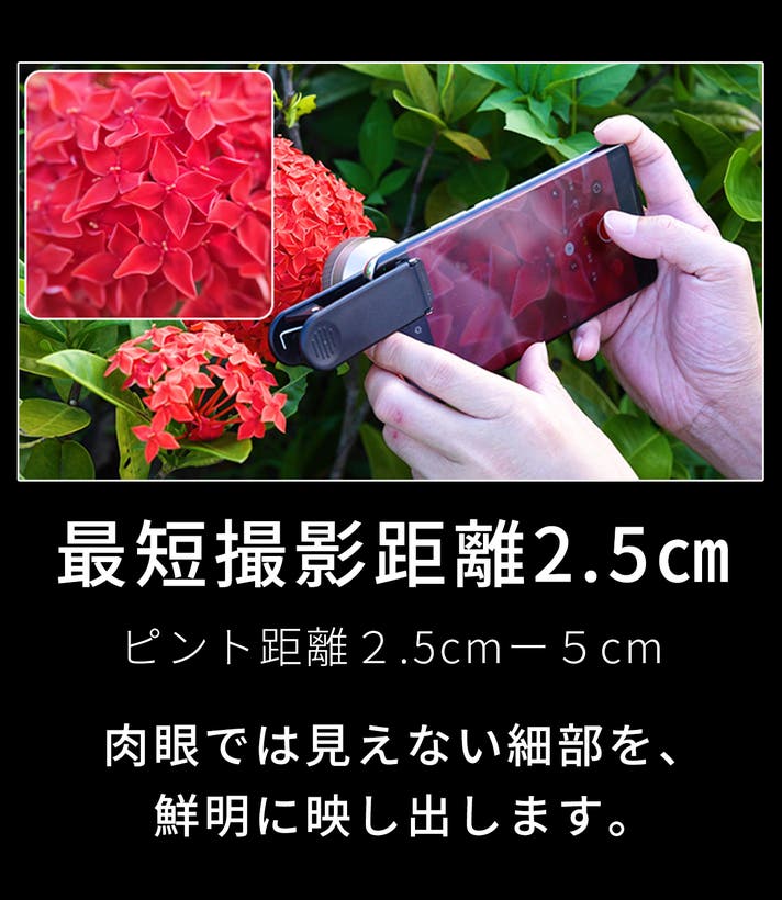 2.5〜5cmという近距離から、肉眼では見えないミクロの世界を鮮明に映し出します。