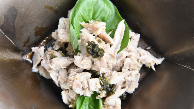 イタリアンテイストに仕上げた自家製ツナ。バジルの香りが好相性です