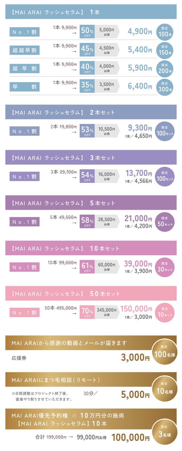 【99000円お得】MAI ARAI優先予約権+10万円分の施術+美容液10本