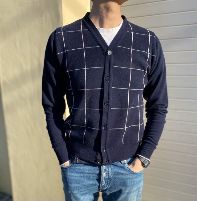 【超早割限定40着】ウールウィンドウペン カーディガン