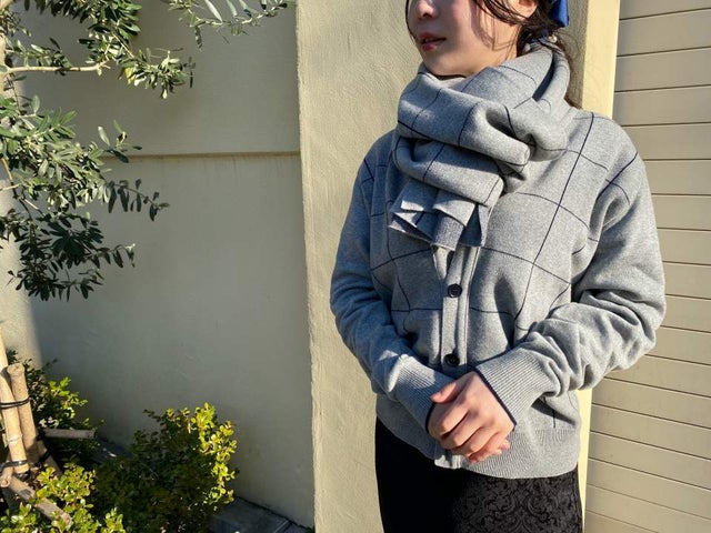【超お得セット割り】ウールウィンドウペン カーディガン1枚+ストール1枚