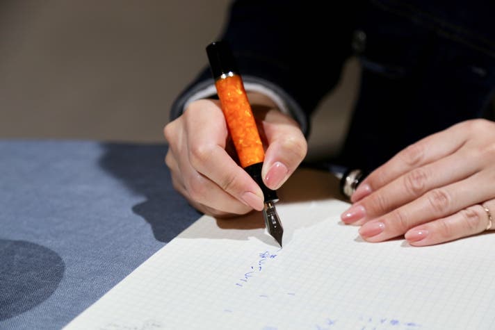 私たちのこだわりはD-Nのイタリア美軸を、ただ見た目にキレイで美しいアクセサリーのような存在で終わらせたくない。万年筆は「書く道具」であることい強いこだわりを持っています。そんな思いから、金ペン、スチールペンにかかわらずナポリから入荷する全ての万年筆に標準的な日本語の筆記に合わせて、外部の専門家にペン先調整を依頼しています。