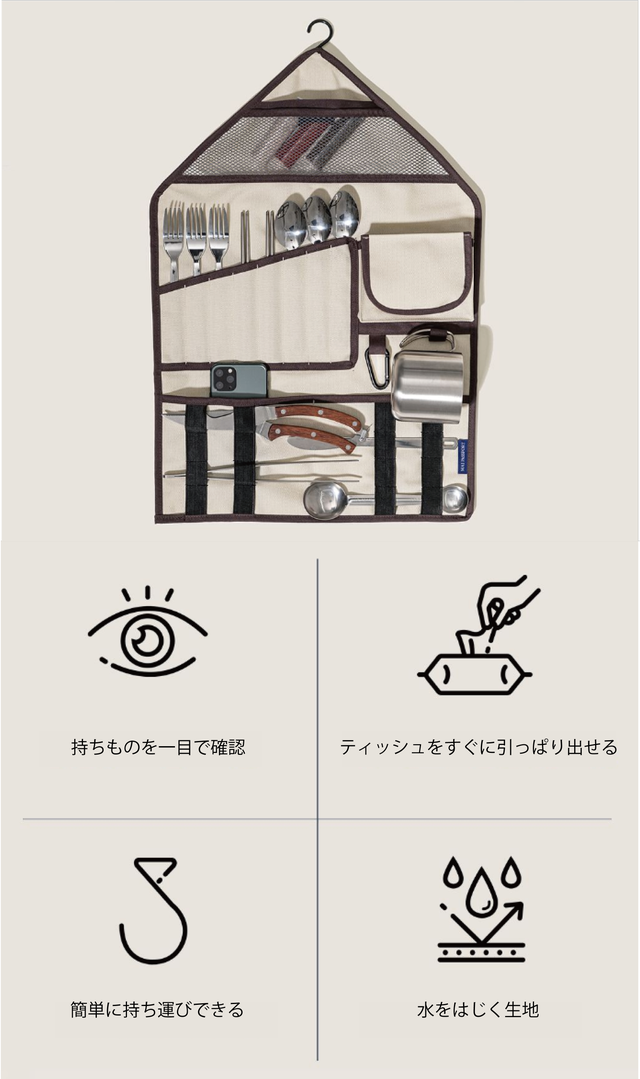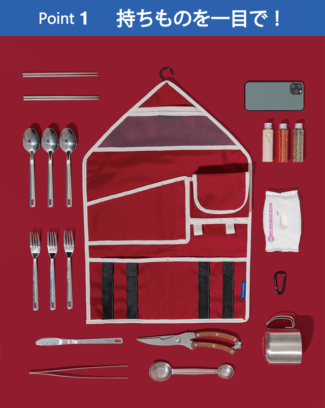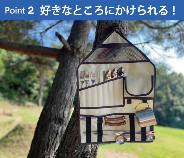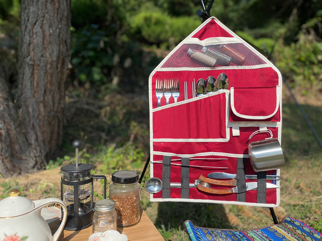 - キャンプで必要なカトラリーセットを大容量に収納!