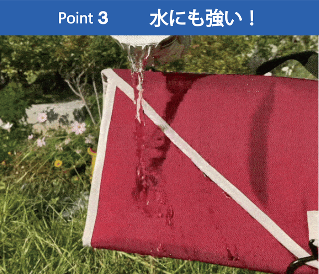 水をはじくので、突然の雨や調理中の水はね、飲み物をこぼしてしまっても中のものを守ってくれます。