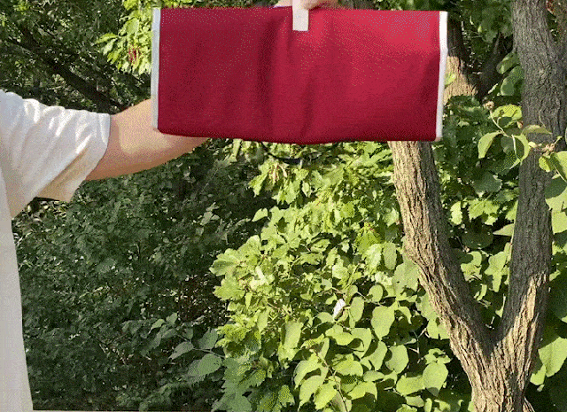 また、フックが付いているので、机の上に置くだけでなく、近くの木やイス、テーブルのはしなど、ひっかけるところがあればどこにでもかけることができます。