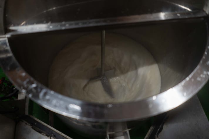 55℃の高温で糖化した甘酒を25℃ぐらいまで冷却して、そこに培養した乳酸菌を投入して乳酸酸性をつくる。100年前の設備や衛生環境では難しかった製法も現代の技術で復活させることができました。