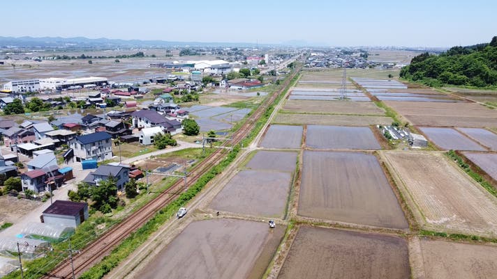 六日市町は、金倉山と信濃川に挟まれ、田んぼと住宅街の真ん中をJR上越線が駆け抜ける閑静でどこか落ち着く場所です。