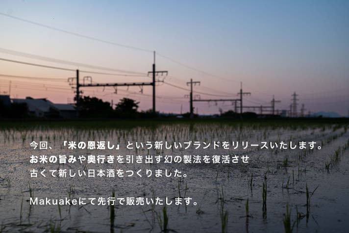 「Makuake(マクアケ)」は、実行者の想いを応援購入によって実現するアタラシイものやサービスのプラットフォームです。このページは、 フードカテゴリの 「創業150周年の新潟の酒蔵がチャレンジする新ブランド『米の恩返し』」プロジェクト詳細ページです。
