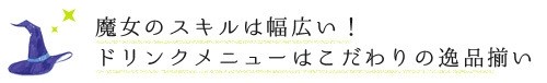 魔女の家コンセプトにふさわしいものをノンアルコール含め、何点かご用意しております。ハーブや生絞りフルーツカクテルなど身体に優しい素材を中心に考えています。
