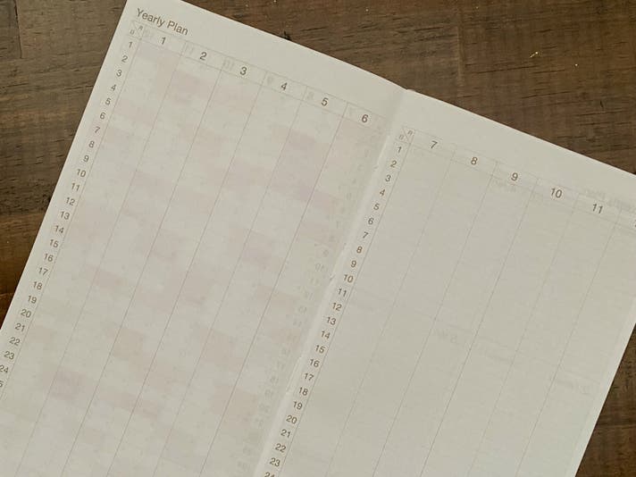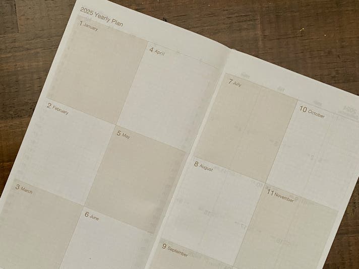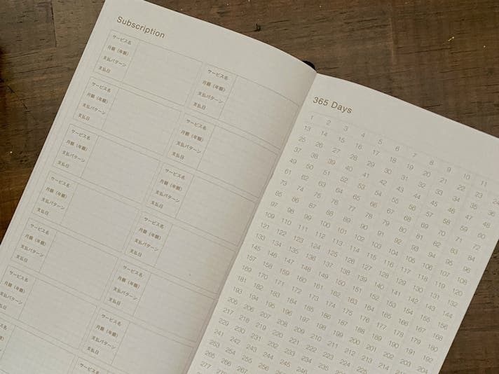 月間と年間が複数あったり、ふりかえり、365マスなど、多種多様なフォーマット。どれもシンプルで汎用性が高く、活用したくてうずうず…!思いついたことを試しながら、自分だけの1冊になっていく過程を楽しんでいます。