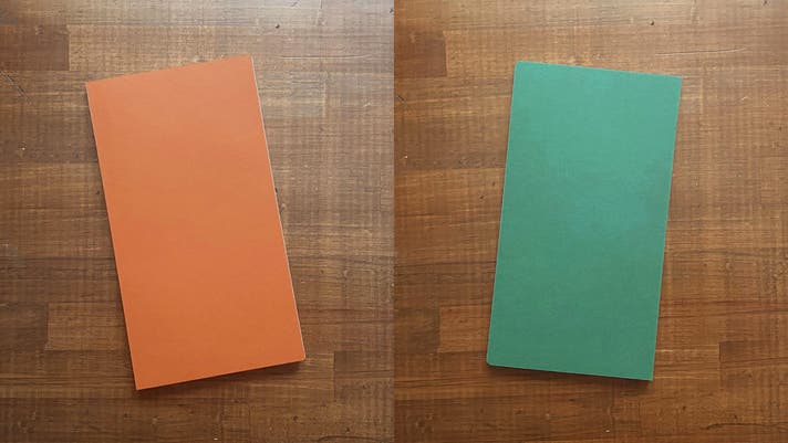 完成した「お供のA5スリムバイカラー方眼ノート」1冊+ノートカバー1冊(送料・税込み)