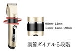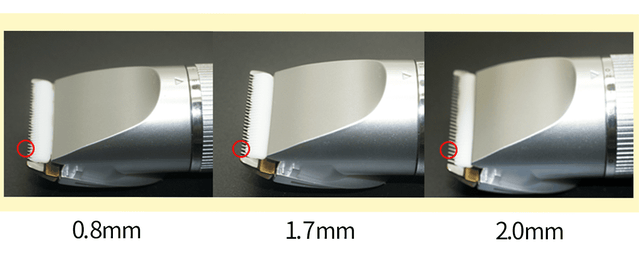 刃は「 0.8mm〜2.0mm 」まで5段階で微調節が可能な為、お好みの長さに合わせてカット可能です。(0.8mm・1.1mm・1.4mm・1.7mm・2.0mm)