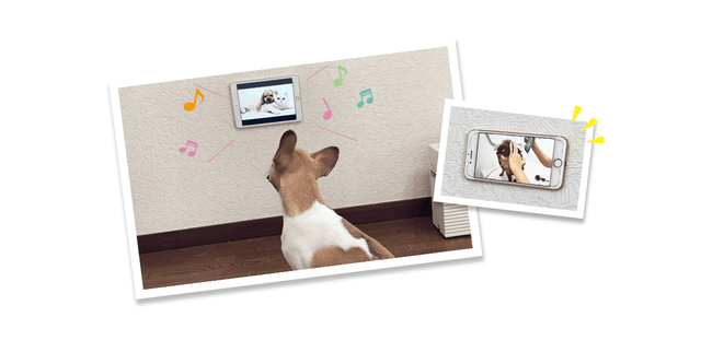 スマホでワンちゃんが落ち着くヒーリングミュージックを流したり、ワンちゃんが好きな音や画像を流し、壁に貼り付ける事で興味を持たせることができます。