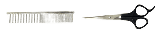 バリカンだけでは難しい部分はハサミ、コームを併用してカット。バリカンカット後に全体を整えるのにも大変便利です。