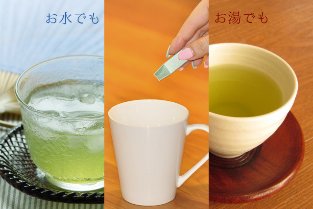 石臼で丁寧に挽いてあるため、水でも、お湯でもさっと溶け、お茶の健康成分をまるごと飲むことができます。