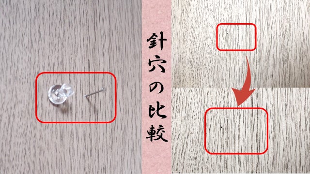 細釘であっても小さな釘の穴跡は残ります。穴跡が残っても問題ない壁にご使用下さい。