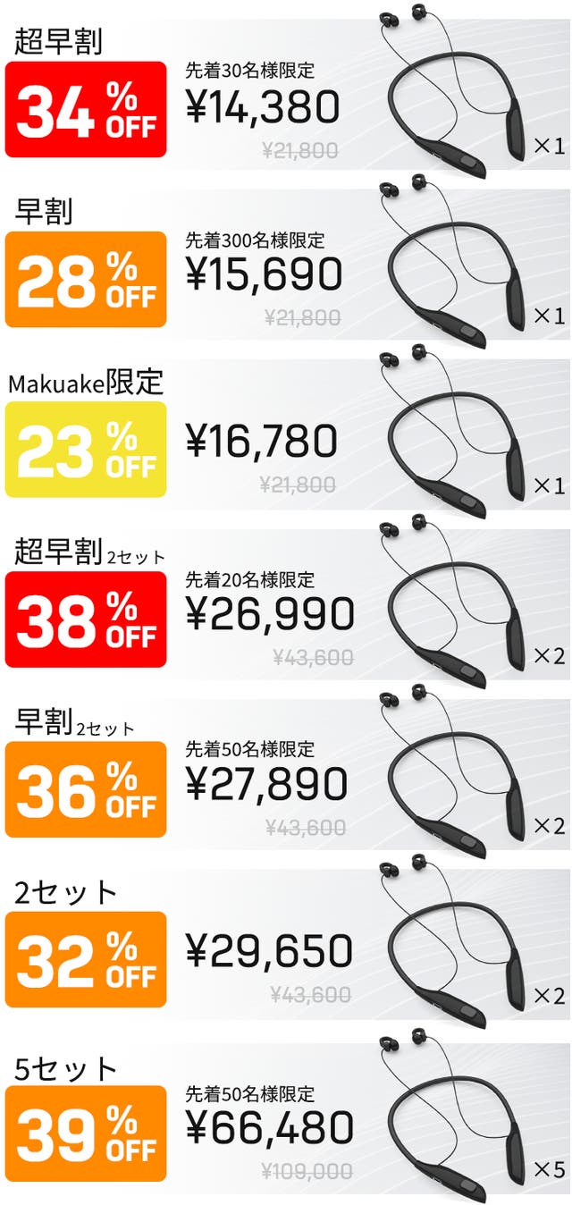 【先着50名様限定&5セット割39%OFF】首掛け式集音イヤホン×5