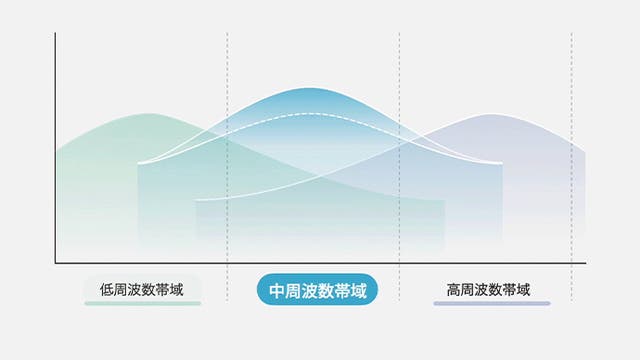 多機能ボタンを2回押すと3つの周波数帯域に切り替わります。モニターで周波数帯域を確認し、ご自身が思うモードに調節可能です。