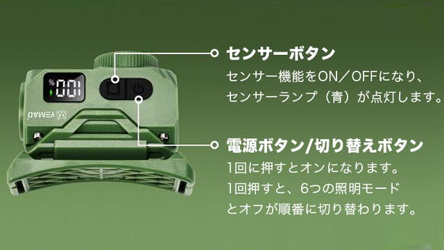 - 500ルーメンかつ頭に巻いたり磁石でどこかに張り付けたりできる!超高感度センサー付き!