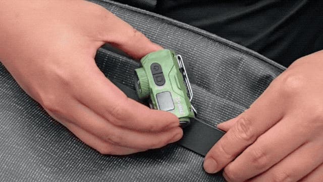 背面にはクリップが付き、サクッとバックパックに装着可能です。ヘッドバンド、胸ポケット、帽子などに取り付け可能です。また両手を使って登山しなければいけない場面や手に物を持っている場合にもぴったりです。