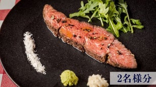 牛肉本来の旨みがしっかりと感じられるため、塩と香草のいたってシンプルな味付け。噛みしめるたびに、上品でとろけるような食感と牛肉のコクを楽しめます。お好みで塩やわさびをつけてアレンジしてみてください。