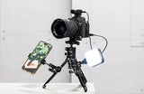 脚部には複数の補助光やスマホを取り付け可能。高さ調整もできるから、デスクトップ撮影や自撮りにも最適!省スペースで多彩な撮影をサポートし、あなたの撮影空間をスッキリ整理!