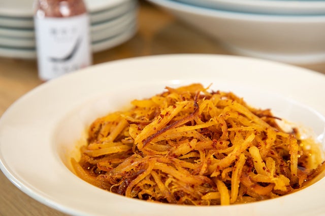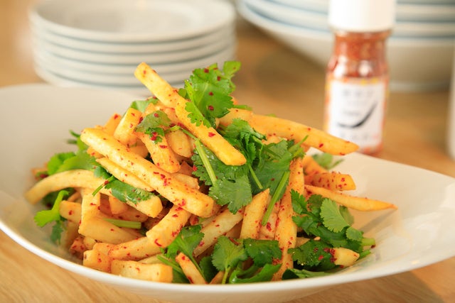 「唐辛子まみれ」をたっぷりふりかけて和えたら完成