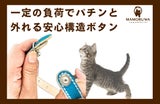 ※ボタンが外れる機能は絶対ではありません。子猫の体重が軽すぎる場合や、引っ掛かり方によって正常に作動しないことも稀にございますので、何卒ご留意ください。