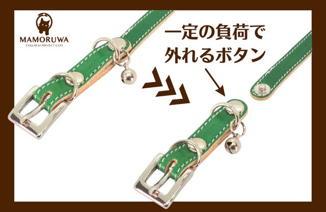 ※ボタンが外れる機能は絶対ではありません。子猫の体重が軽すぎる場合や、猫の引っ掛かり方によっては、正常に作動しないことも稀にございますので、何卒ご留意ください。