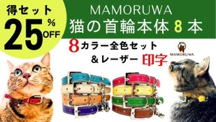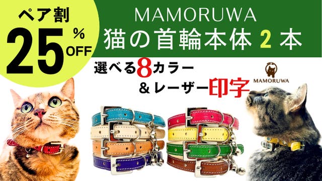 【ペア早割】25%OFF 猫の首輪MAMORUWA本体2本(選べる8カラー)