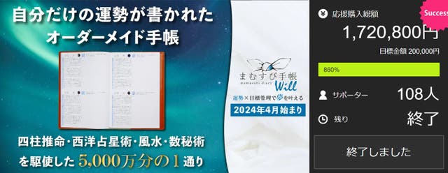 「Makuake(マクアケ)」は、実行者の想いを応援購入によって実現するアタラシイものやサービスのプラットフォームです。このページは、 プロダクトカテゴリの 「あなただけの運勢を1年間鑑定・掲載!夏から始める”オーダーメイド” まむすび手帳」プロジェクト詳細ページです。