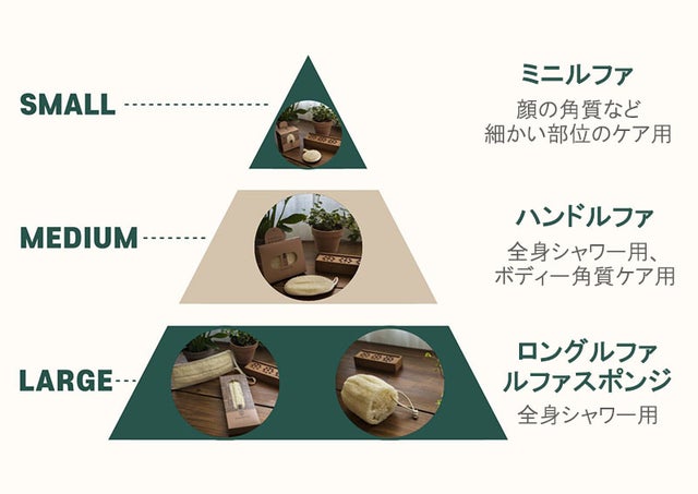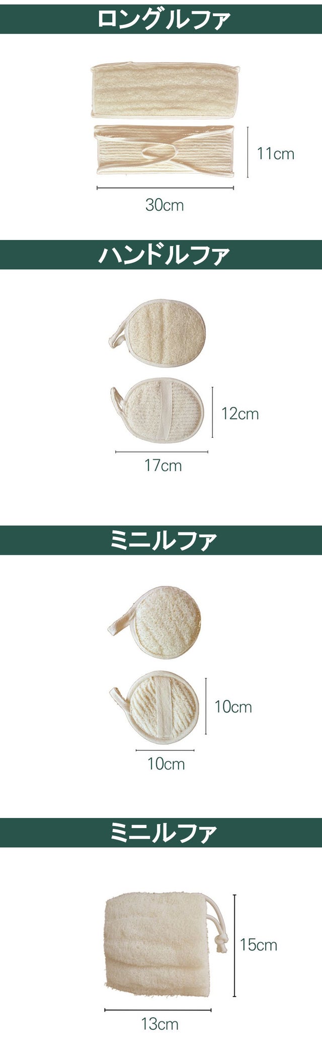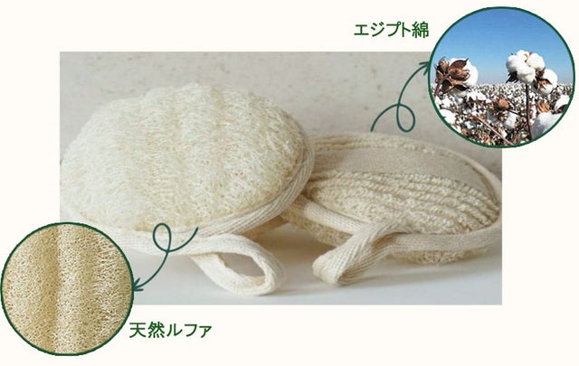 エジプト産ルファはアジアンルファより大きく柔軟なので泡がよくでき、表面のセルロース繊維網により肌の角質や老廃物をナチュラルにケアするのに適した植物です。