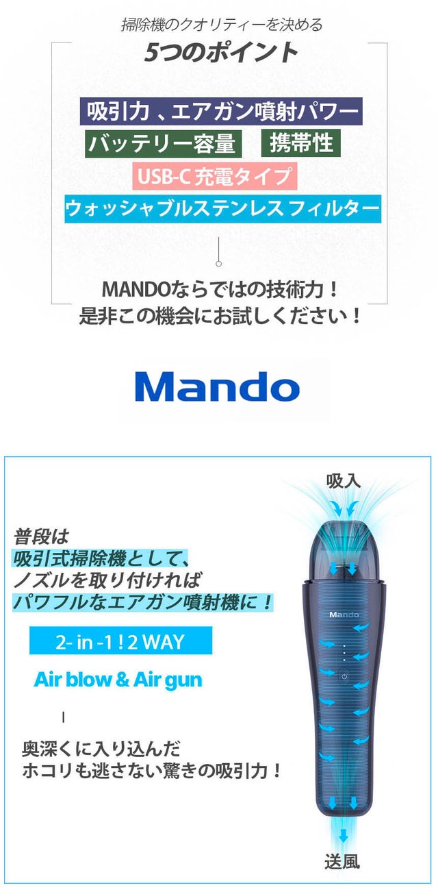 MANDO車用掃除機の特長