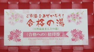 1枚につき、大人1名入浴料800円、合格の湯のファイスタオル1枚200円、合格の湯のマスク1枚100円、合格の湯の歯ブラシ1個100円、合格カード1枚300円、レンタルバスタオル1枚200円【返却が必要】総額1,700円×2枚【セット】=3,400円相当