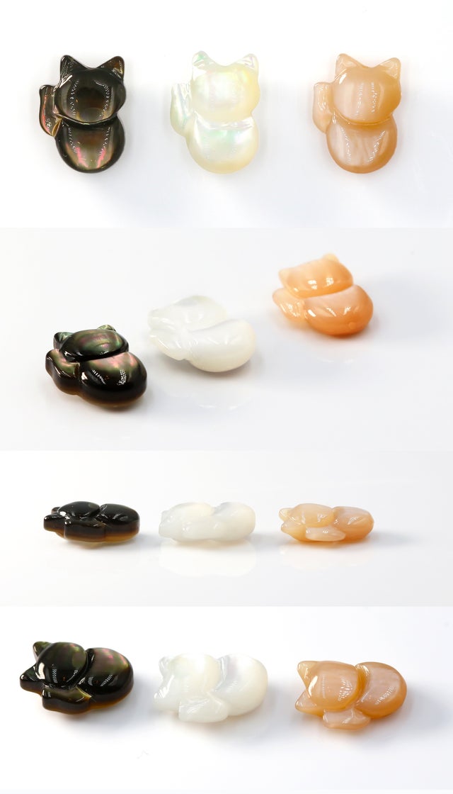 見ていて温かい気持ちになる、天然シェルで作られた「招き猫」は、ホワイト・ピンク・ブラックの3種類でご用意しました。