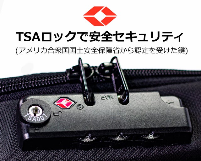 A. TSAロックはアメリカ合衆国の国土保安安全省(TSA)から認定を受けたロック装置です。アメリカの出入国時、保安検査をする際に鍵を壊さずに検査を受けることが可能です。マナーバックパックのTSAロック装置は、鍵を破損しなくても手荷物検査が可能です。
